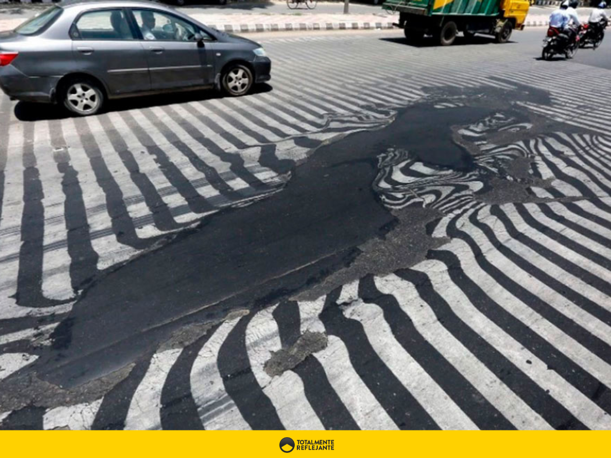 - Derretimiento y Distorsión: En climas extremadamente calurosos, la pintura vial termoplástica puede derretirse o volverse pegajosa, lo que afecta su capacidad para mantenerse en su lugar y para reflejar la luz correctamente. Esto puede conducir a una pérdida significativa de visibilidad, especialmente durante el día cuando el sol incide directamente sobre la carretera.